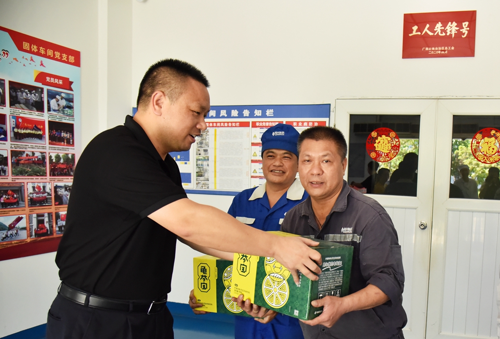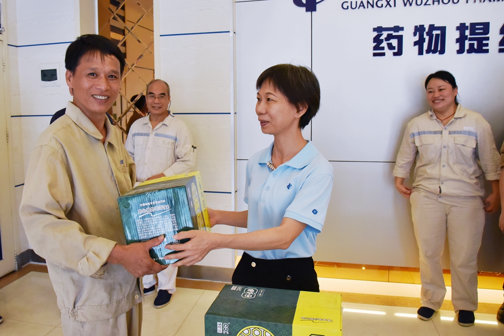 “天氣這么熱,大家辛苦了!”“注意自我保護,記得多喝水!”“崗位都備有防中暑藥品,主任們要留意職工的身體狀態(tài), 合理安排休息。”近日,梧州制藥領導班子分別帶上清涼飲品,到各車間慰問奮戰(zhàn)在高溫崗位的職工,聲聲叮嚀,讓職工們在盛夏中感受到了陣陣清涼。