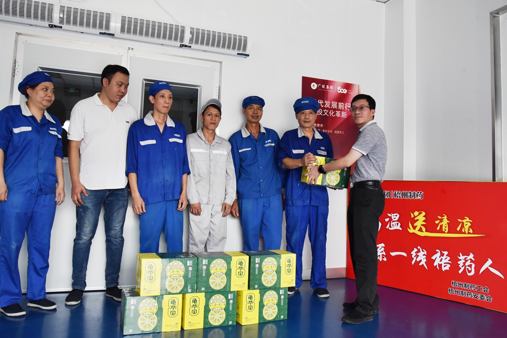 炎炎夏日送清涼,絲絲關愛入心田。一份關愛、一份叮嚀、一份囑托,切切實實把防暑降溫和安全生產(chǎn)落實到一線每一名職工的心中。此次“送清涼”活動的開展體現(xiàn)了梧州制藥重視員工安全、關心員工健康的工作理念,更是落實“我為職工辦實事”的具體實踐,讓廣大一線職工真切感受到“娘家人”就在身邊。