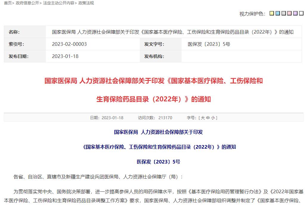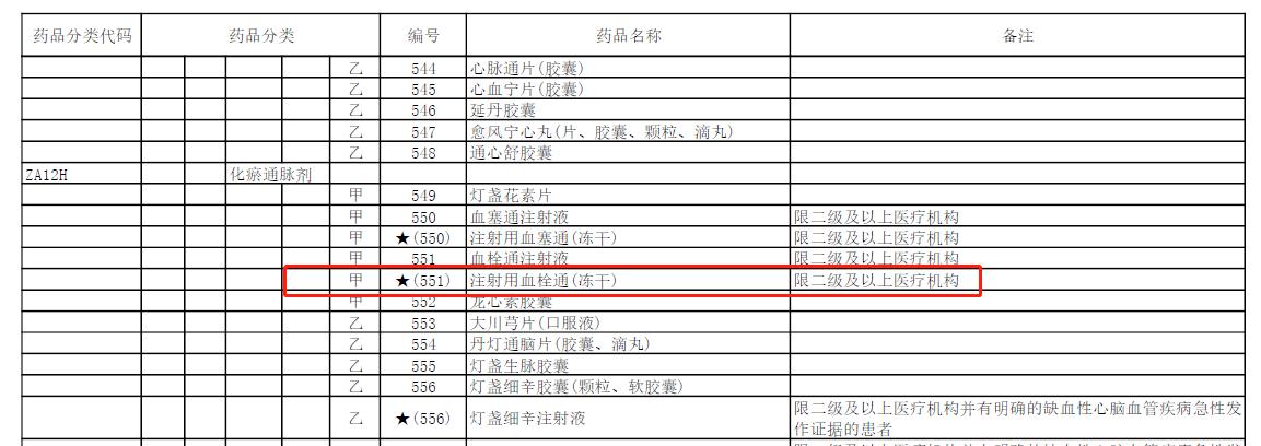 2023年1月18日,國家醫(yī)療保障局正式對外公布2022年《國家基本醫(yī)療保險、工傷保險和生育保險藥品目錄》,其中梧州制藥公司獨家生產(chǎn)的國家基藥——注射用血栓通(凍干)由2021年“限二級及以上醫(yī)療機構(gòu)的中風偏癱或視網(wǎng)膜靜脈阻塞患者”調(diào)整為:“限二級及以上醫(yī)療機構(gòu)”。并于2023年3月1日起正式執(zhí)行。