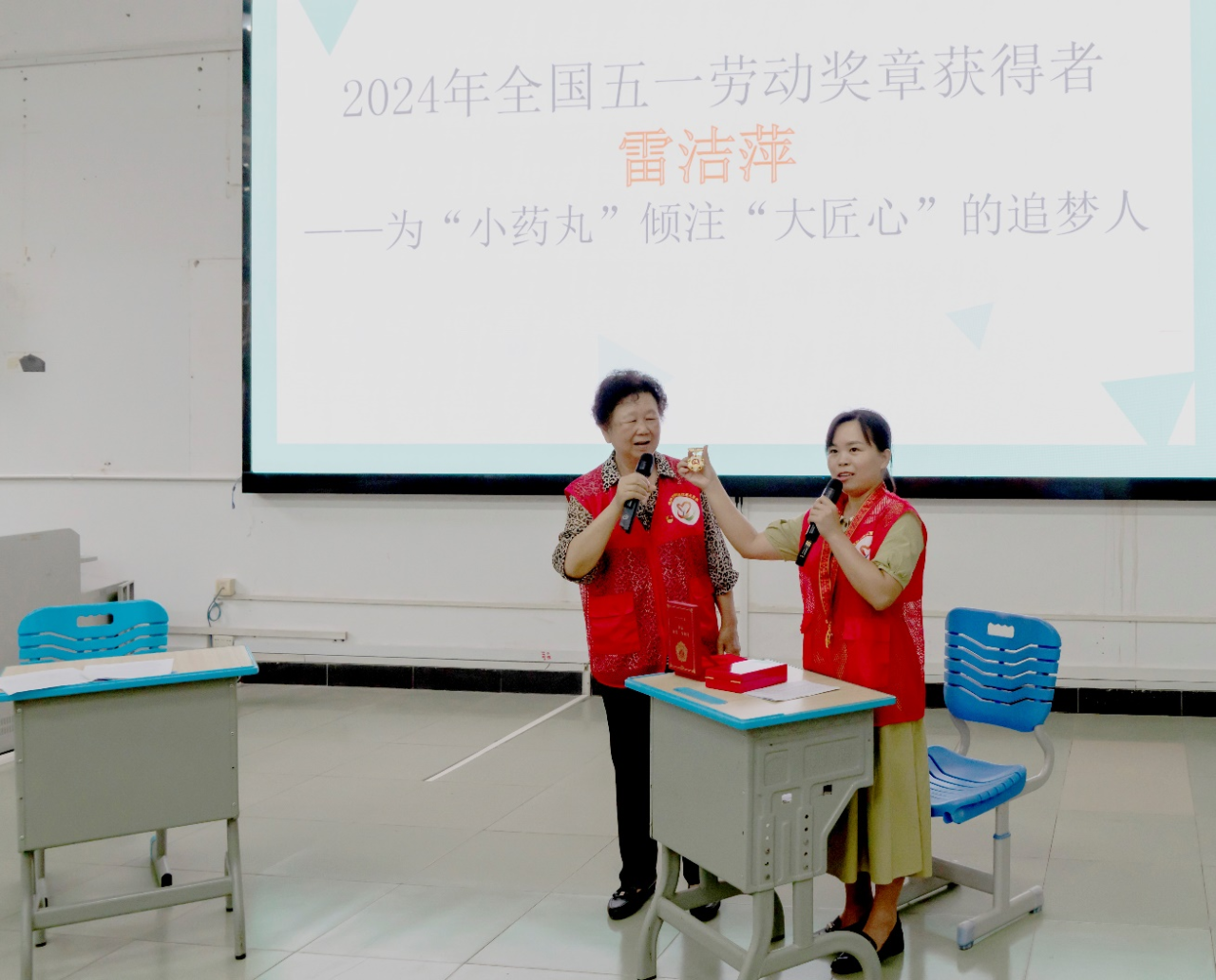 全國(guó)五一勞動(dòng)獎(jiǎng)?wù)?、“廣西工匠”獲得者、自治區(qū)級(jí)非物質(zhì)文化遺產(chǎn)“中華跌打丸”制作技藝第五代傳承人雷潔萍結(jié)合學(xué)生時(shí)代的求學(xué)故事、工作之后的奮斗歷程,用樸實(shí)真摯的語言,以自己二十多年的成長(zhǎng)軌跡為脈絡(luò),向在座師生講述了自己匠心筑夢(mèng)的心路歷程,詮釋了新時(shí)代勞模精神、勞動(dòng)精神和工匠精神的內(nèi)涵與要求,引導(dǎo)廣大學(xué)生成為有理想、有信念、有擔(dān)當(dāng)?shù)男聲r(shí)代好少年。