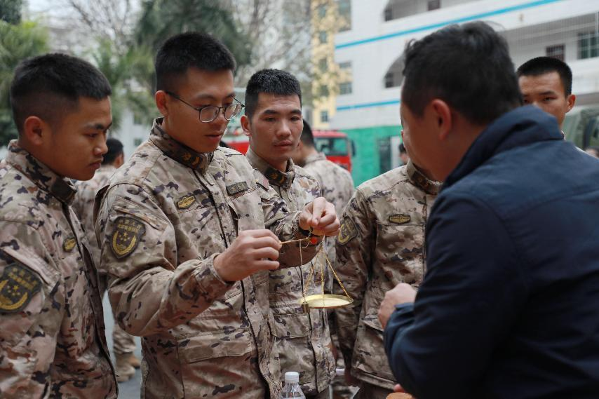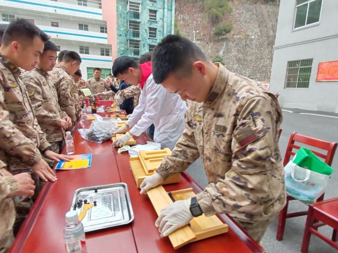 戥子、杵臼、搓丸板,這些平日很少接觸到的中藥傳統(tǒng)制藥工具,觸發(fā)起武警官兵們強(qiáng)烈的好奇心和探知欲,興致勃勃地嘗試操作,紛紛參與體驗中華跌打丸制作技藝,從制丸條到成功搓制成丸,每一道工序無不感受著非遺文化獨特的魅力。