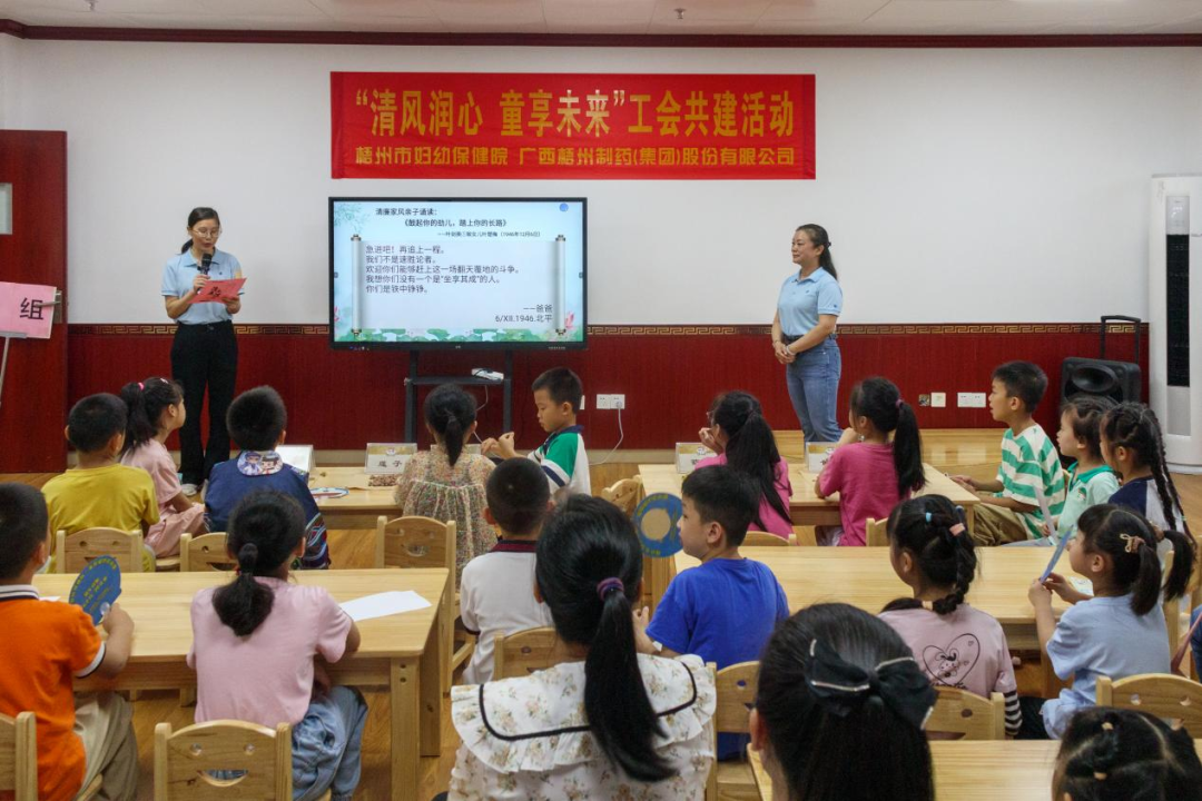 在六一國際兒童節(jié)來臨之際,梧州制藥與梧州市婦幼保健院攜手,共同策劃了一場別開生面的“清風潤心 童享未來”主題活動。為100多組職工家庭搭建起親子互動的溫馨平臺,讓傳統(tǒng)文化與現(xiàn)代科普在歡聲笑語中交融。這份由醫(yī)企聯(lián)動共同送出的特殊“六一”禮物,不僅承載著對職工子女的關愛,更傳遞著對職工家庭幸福的人文關懷。