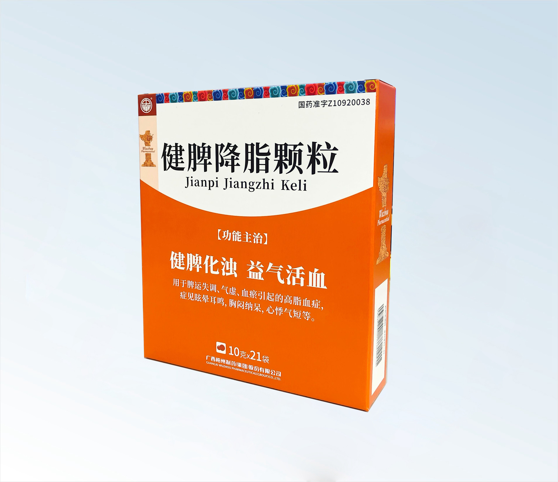 【藥品名稱】通用名稱:健脾降脂顆粒漢語拼音:Jlanpl Jiangzhi Keli【成份】南山楂、澤瀉、丹參、黨參、靈芝、遠志?!拘誀睢勘酒窞樽睾稚w粒;氣微香,味苦、微甜。【功能主治】健脾化濁,益