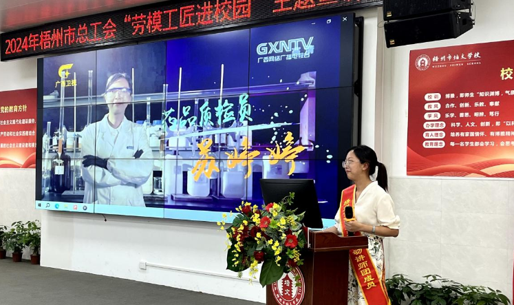 宣講勞動故事傳播梧藥精神“勞模工匠進校園”主題宣講活動近日,梧州制藥質量控制部主管蘇婷婷作為勞模代表走進梧州市培文學校進行2024“勞模工匠進校園”主題宣講。勞動綻放光芒,宣講激發(fā)夢想本次由梧州市總工會、梧州