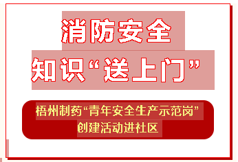 消防安全知識“送上門”梧州制藥“青年安全生產示范崗”創(chuàng)建活動進社區(qū)近日,梧州制藥青年員工積極參與“中恒集團青年安全生產示范崗”創(chuàng)建工作,不但注重將創(chuàng)建活動與日常班組生產工作有機融合,還結合今年第23個全國安全